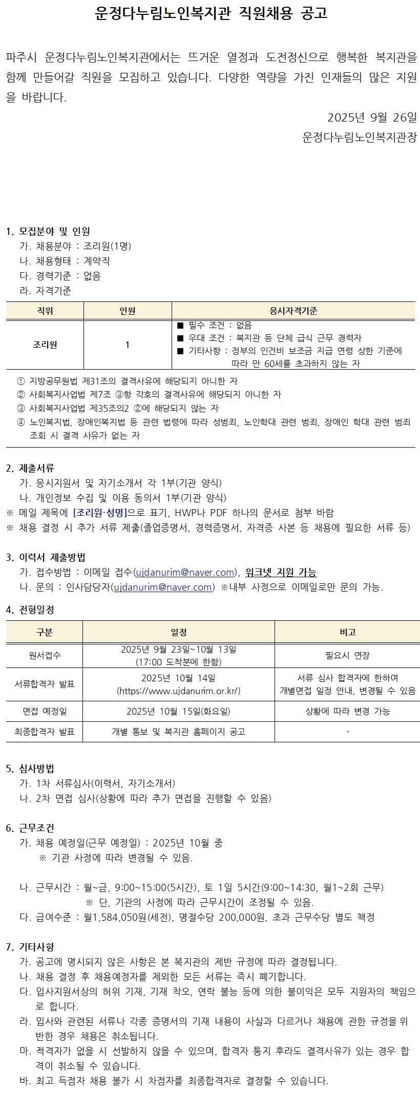1. [¿îÁ¤´Ù´©¸²³ëÀκ¹Áö°ü] ä¿ë°ø°í¹®(Á¶¸®¿ø) ÀÔ»çÁö¿ø¼ Æ÷ÇÔ.hwp