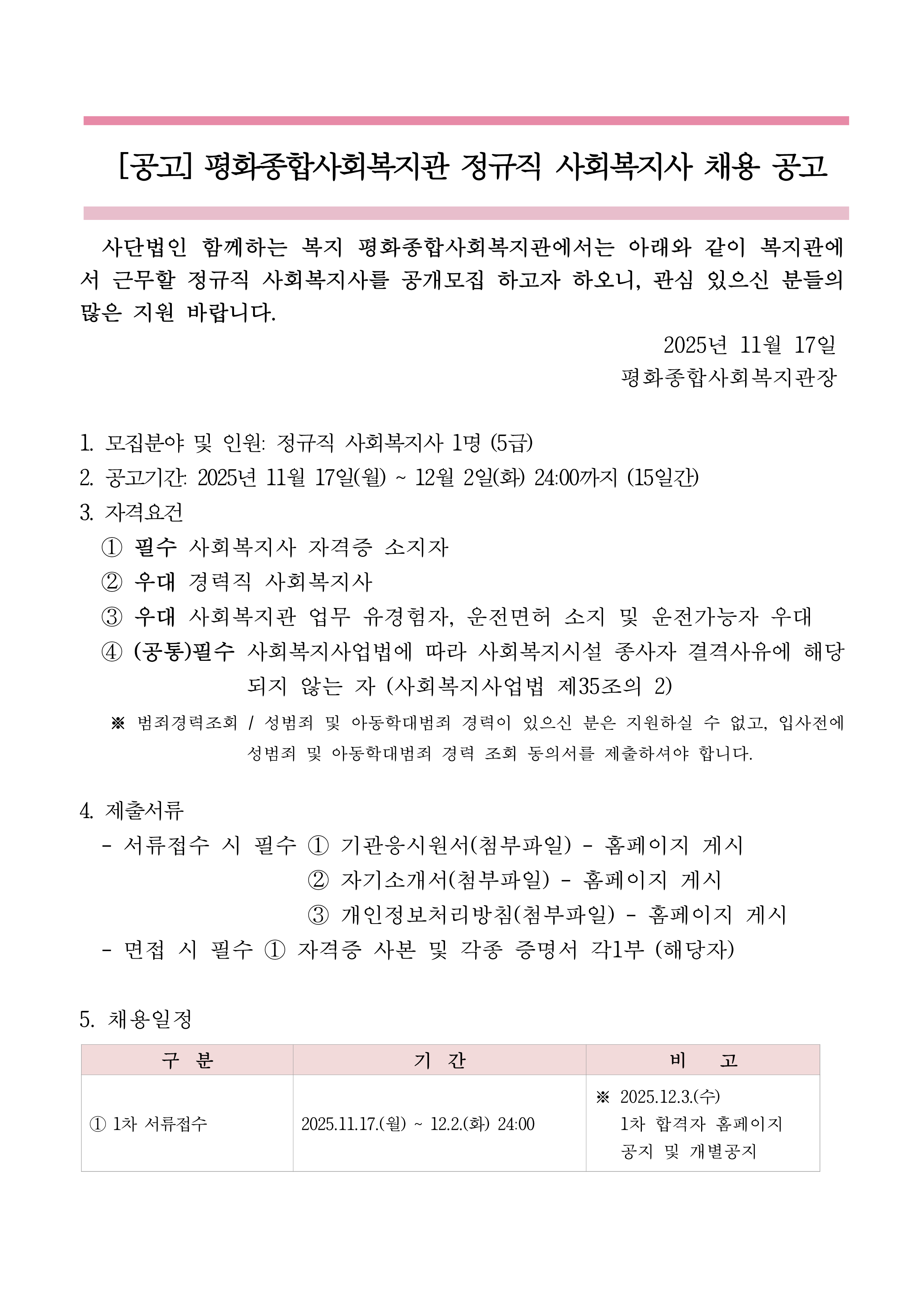 ±â°üä¿ë¼·ù - ÆòÈÁ¾ÇÕ»çȸº¹Áö°ü(Á¤±ÔÁ÷ »çȸº¹Áö»ç) 2025.11.17..hwp