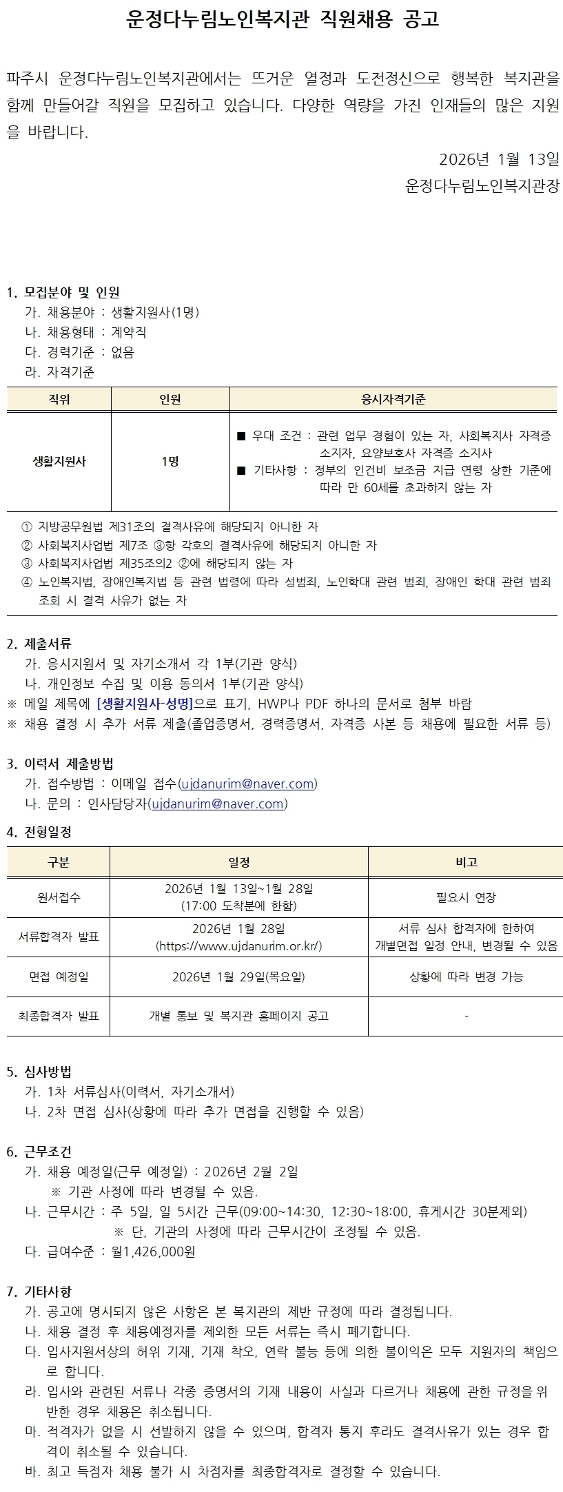 [¿îÁ¤´Ù´©¸²³ëÀκ¹Áö°ü] °è¾àÁ÷ Á¶¸®¿ø ä¿ë °ø°í