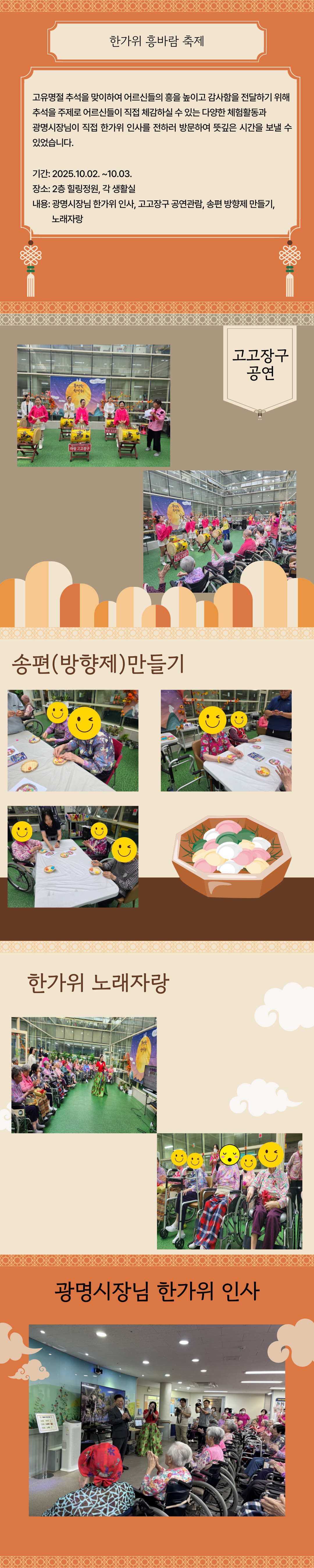 º» ¼¾ÅÍ¿¡¼´Â Ãß¼®À» ¸ÂÀÌÇÏ¿© ¾î¸£½ÅµéÀÇ ÈïÀ» ³ôÀÌ°í °¨»çÇÔÀ» Àü´ÞÇϱâÀ§ÇØ 'ÇѰ¡À§ Èï¹Ù¶÷ ÃàÁ¦'¸¦ ÁøÇàÇÏ¿´½À´Ï´Ù.