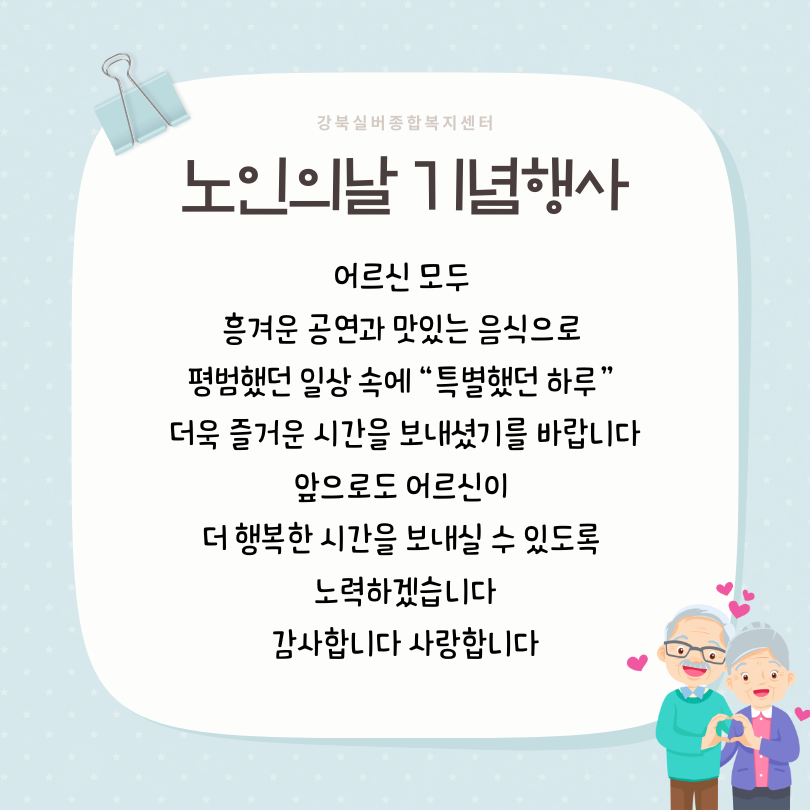 ÀúÈñ ¼¾ÅÍ´Â ³ëÀÎÀÇ ³¯À» ¸ÂÀÌÇÏ¿© ¾î¸£½ÅµéÀ» À§ÇÑ ÃàÇÏ °ø¿¬°ú ÇÔ²² ÇÇÀÚ ¹× À½·á ǪµåÆ®·°À» ¿î¿µÇÏ¿©
