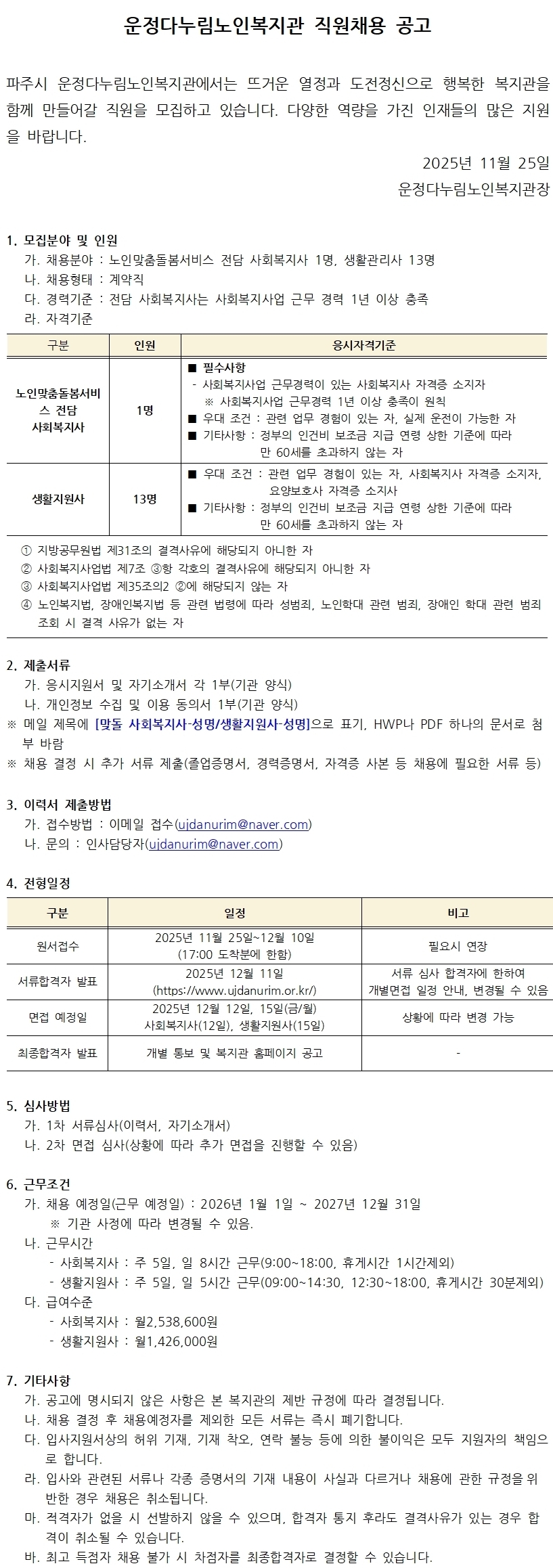 [¿îÁ¤´Ù´©¸²³ëÀκ¹Áö°ü] ³ëÀÎÀÏÀÚ¸® ¹× »çȸȰµ¿Áö¿ø»ç¾÷ ´ã´çÀÚ Ã¤¿ë