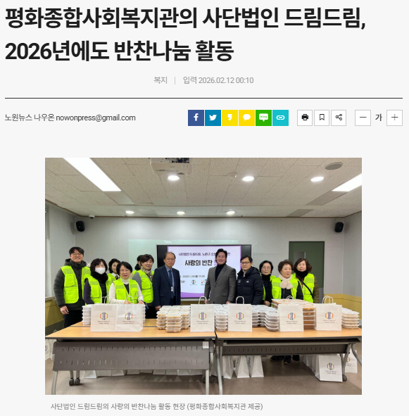 2026³â 1¿ù 27ÀÏ »ç´Ü¹ýÀÎ µå¸²µå¸²Àº Áö¿ª»çȸ¸¦ À§ÇÑ ³ª´® Ȱµ¿ÀÇ ÀÏȯÀ¸·Î »õÇØ¸¦ ¸Â¾Æ ¹ÝÂù ³ª´® ºÀ»çȰµ¿À» ÁøÇàÇß½À´Ï´Ù.