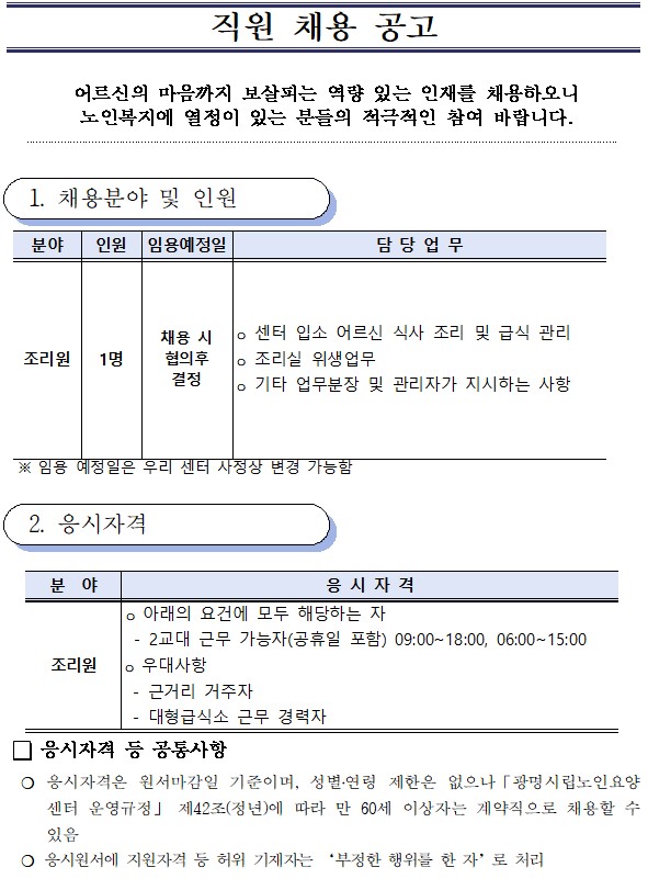 ±¤¸í½Ã¸³³ëÀοä¾ç¼¾ÅÍ Á÷¿ø(Á¶¸®¿ø) ä¿ë °ø°í