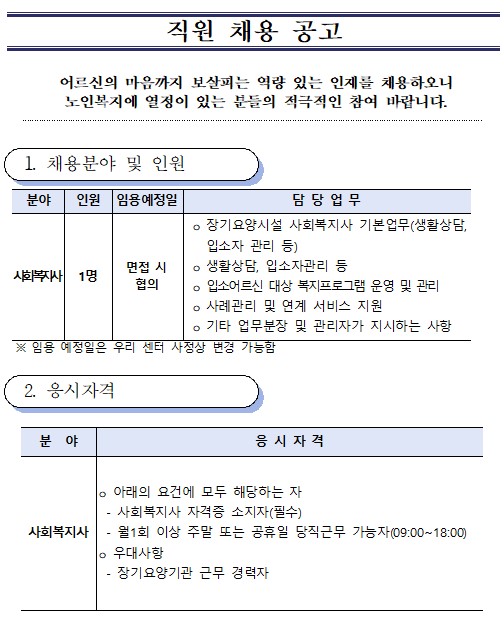 [¿îÁ¤´Ù´©¸²³ëÀκ¹Áö°ü] Á¤±ÔÁ÷ »çȸº¹Áö»ç ä¿ë °ø°í