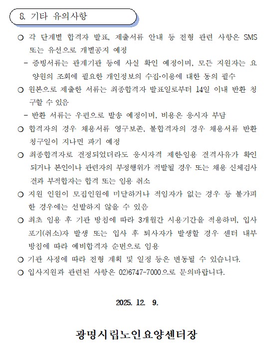 (±¤¸í½Ã¸³³ëÀοä¾ç¼¾ÅÍ) Á÷¿ø(Á¶¸®¿ø) ä¿ë °á°ú °ø°í