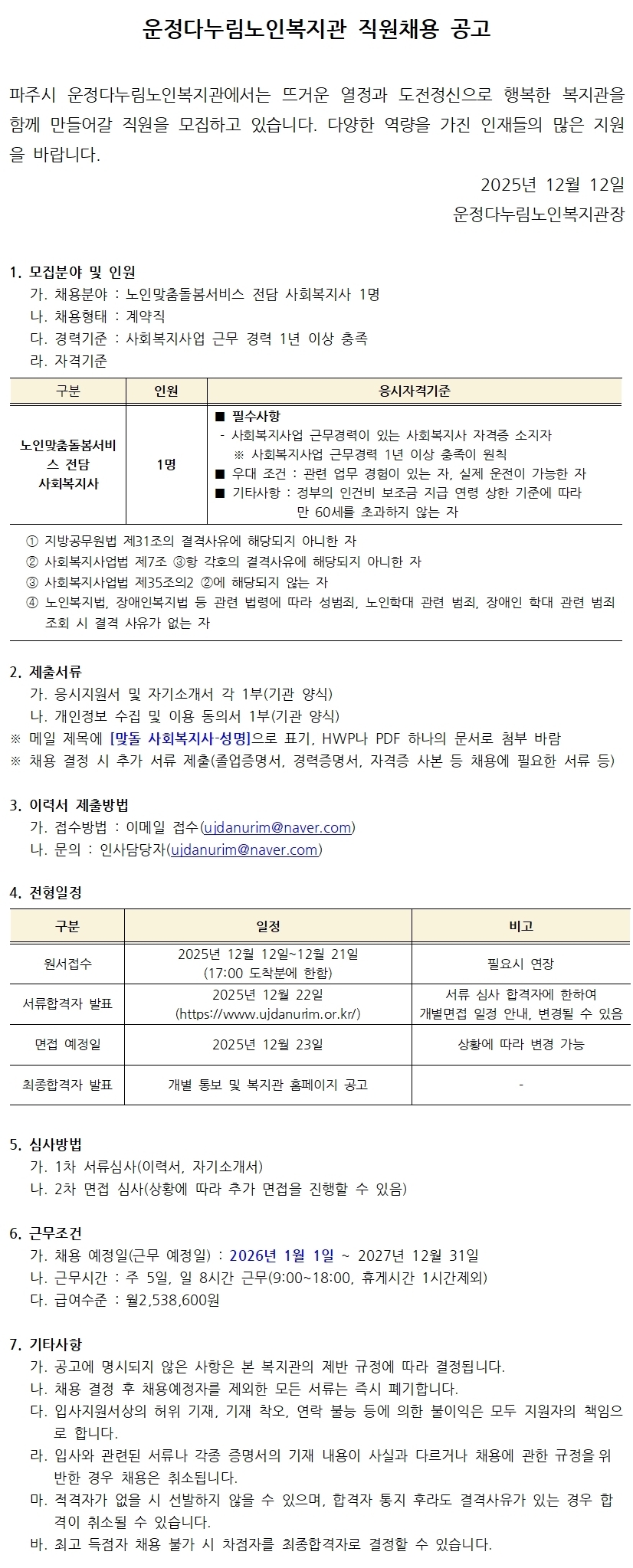 [¿îÁ¤´Ù´©¸²³ëÀκ¹Áö°ü] °è¾àÁ÷ Á¶¸®¿ø ä¿ë °ø°í